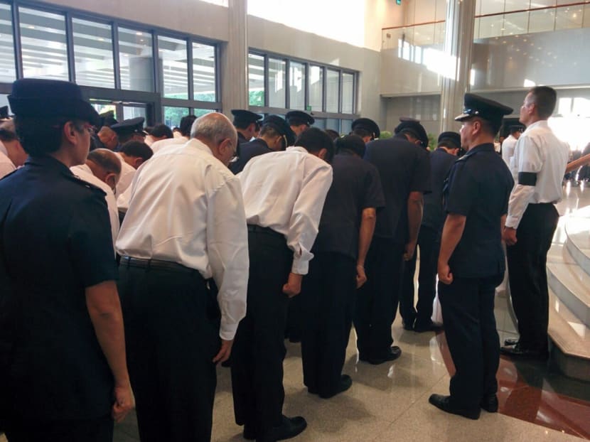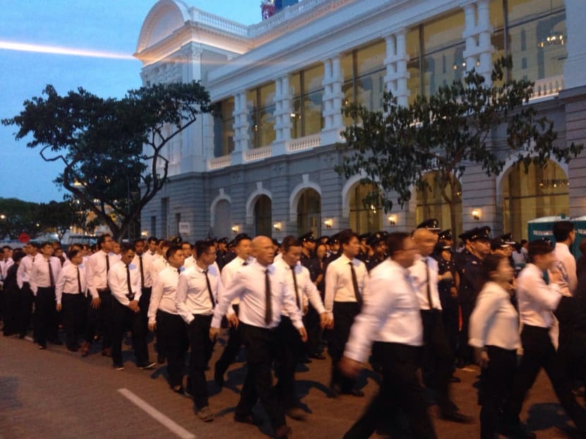 12.20pm: Meanwhile inside Parliament House, members of the public from all walks of life continue to stream in to pay respects to Mr Lee Kuan Yew. At the moment, groups of approximately 30 to 40 people are let in at each time, though some groups are smaller.