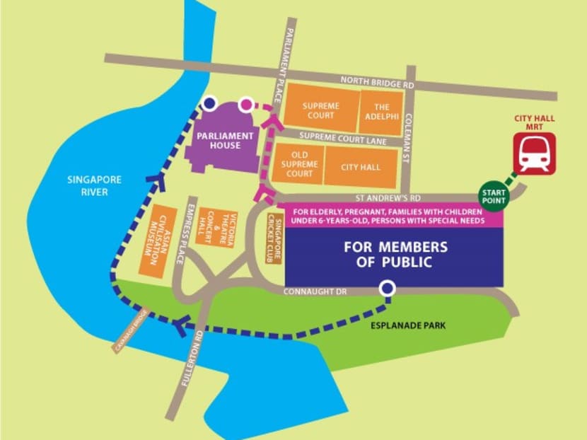 Those who would like to pay their respects to the late Mr Lee Kuan Yew during the lying in state may wish to note that the line to enter Parliament House begins at the riverside Promenade next to Parliament House.
