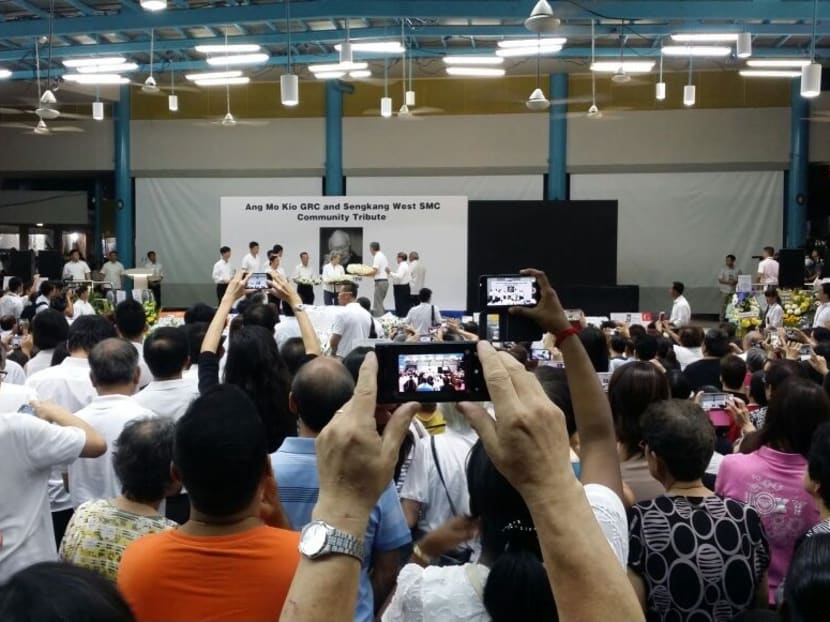 7pm: Residents have been quickly filling up the seats at Ang Mo Kio's tribute site, in anticipation for the special "Tribute Night" organised by Ang Mo Kio GRC. Prime Minister Lee Hsien Loong is expected to attend, and will be joined by residents, students and grassroots volunteers in paying tribute to his father.