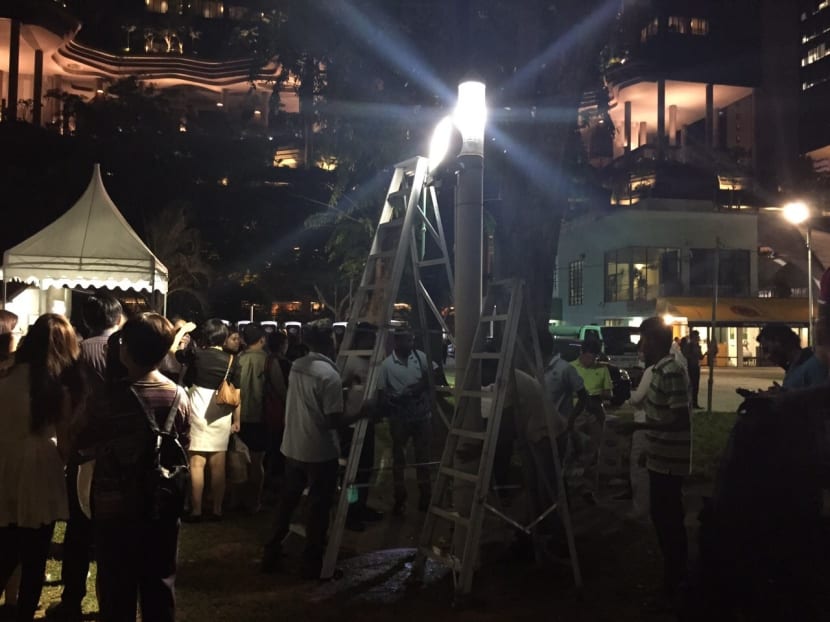 8.30pm: NParks sets up temporary lights around Speakers' Corner to illuminate the area for people queuing late into the night.