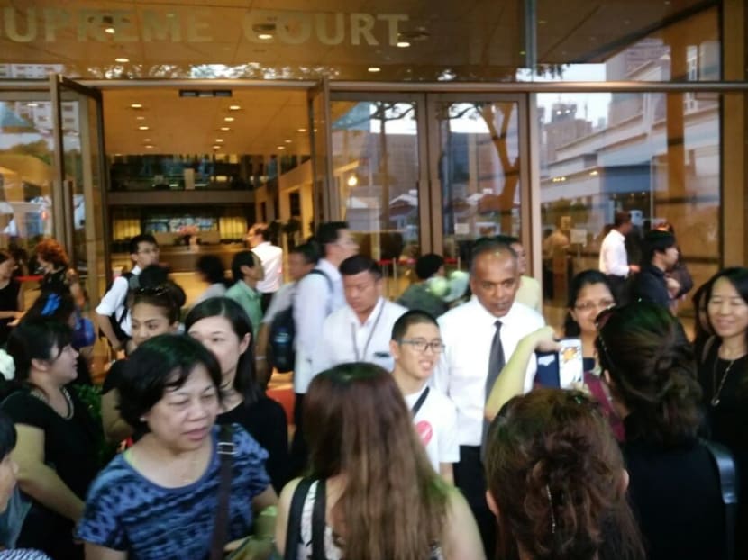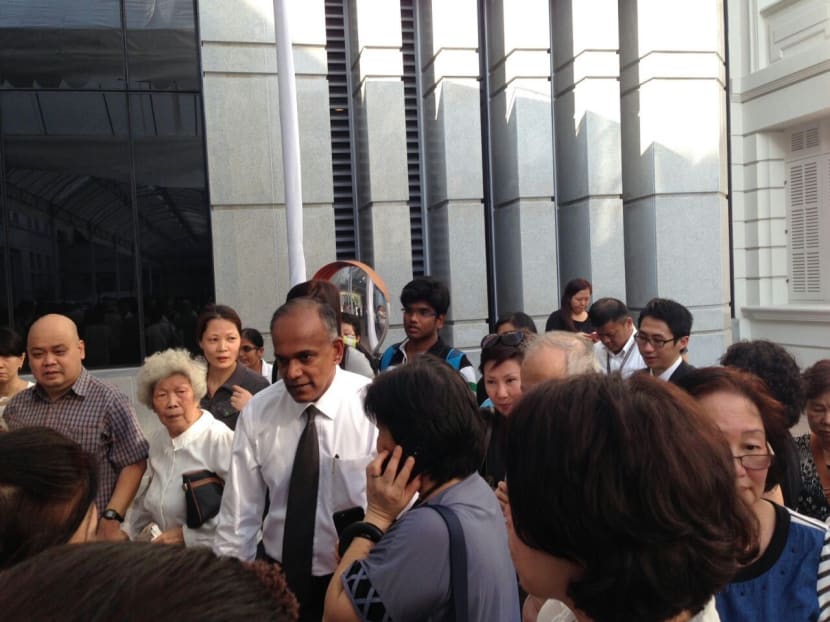 7.05pm: Some two hours after he was spotted mingling with the crowd outside Parliament House, Law and Foreign Affairs Minister K. Shanmugam still hasn't left the area. He's seen outside Supreme Court, chatting with members of the public, shaking hands and obliging in photos.