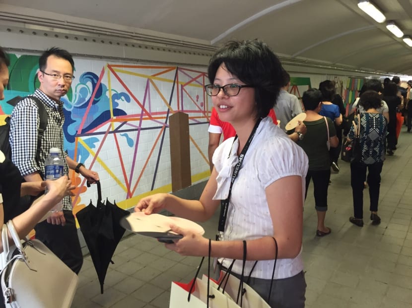 10.20pm: Members from the National Taxi Association are still seen hard at work, giving out potato chips, drinks, sandwiches and biscuits to the people in queues. They had chipped in with their own money to buy the food and drinks. A group of 10 volunteers from Changi Christian Fellowship were also seen wearing specially-printed black tshirts and distributing bottles of water along South Canal Road.