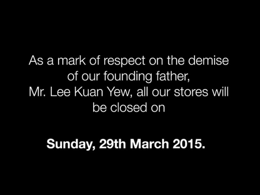 6.23pm: Metro Singapore announced on its Facebook page that all its stores will be closed on Sunday (March 29) as a mark of respect of Mr Lee Kuan Yew.