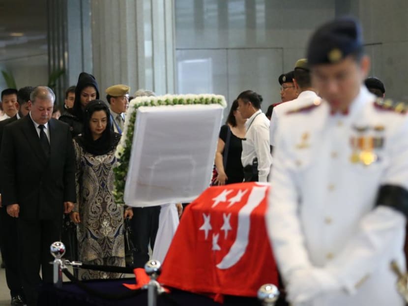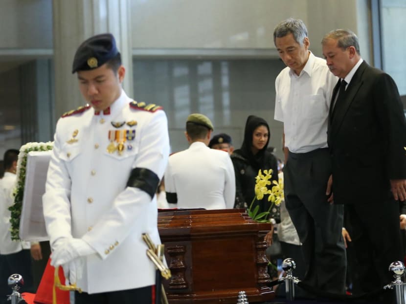 10am: Casket received in Parliament: The casket is received by the Chief of Defence Force (CDF), Lieutenant-General (LG) Ng Chee Meng, and Commissioner of Police, Hoong Wee Teck, Speaker of Parliament, as well as the Prime Minister and the rest of the family.