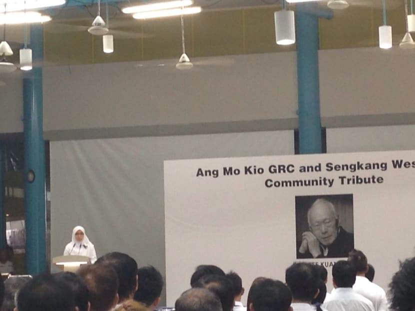 8.15pm: Others have begun delivering their eulogy at "Tribute Night", with Ang Mo Kio GRC MP Intan Azura Mokhtar delivering hers in Malay and former MP S. Vasoo delivering his in Tamil. He later surprised the crowd by speaking in Hokkien, drawing big rounds of applause. Ang Mo Kio GRC MP Seng Han Thong followed with a eulogy in Mandarin.