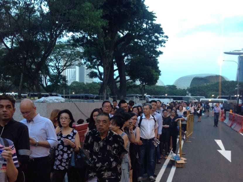 4.15pm: Growing lines to pay respects to Mr Lee Kuan Yew prompt acts of kindness.