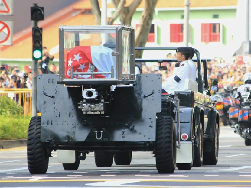 9.22am: Gun carriage route through Istana: The Gun Carriage passes by a military Line of Honour made up of 48 personnel from Singapore Armed Forces Military Police Command. Also present are 20 representatives from Tanjong Pagar (a constituency the late Mr Lee Kuan Yew represented as MP since 1955) and Teck Ghee constituencies.