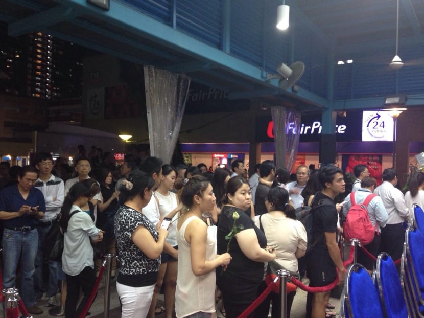 9.55pm: Ang Mo Kio residents are still queueing to write tribute cards and to lay flowers on stage, more than an hour after "Tribute Night" ended.