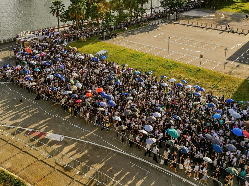 8.20am: The priority queue starts from the Padang, opposite St Andrew's Cathedral. Estimated waiting time is 7 hours.