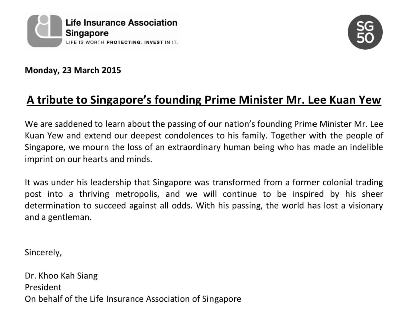 Tributes and offers of condolences have also been streaming in from other organisations and associations here. Here's a look at what they said: