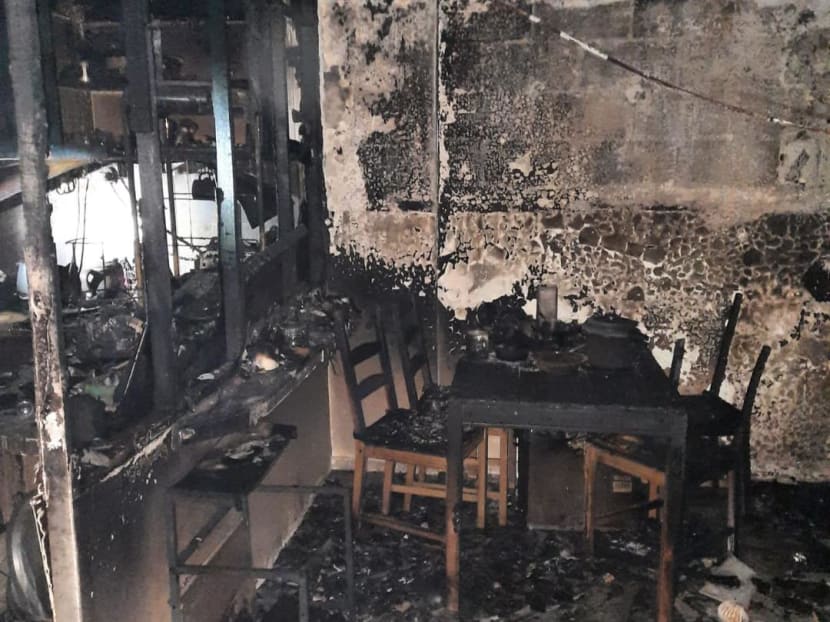 Pictures accompanying the SCDF post also showed the walls of the unit covered in soot, with a blackened dining table and a half-burnt chair seen in the aftermath of the fire.