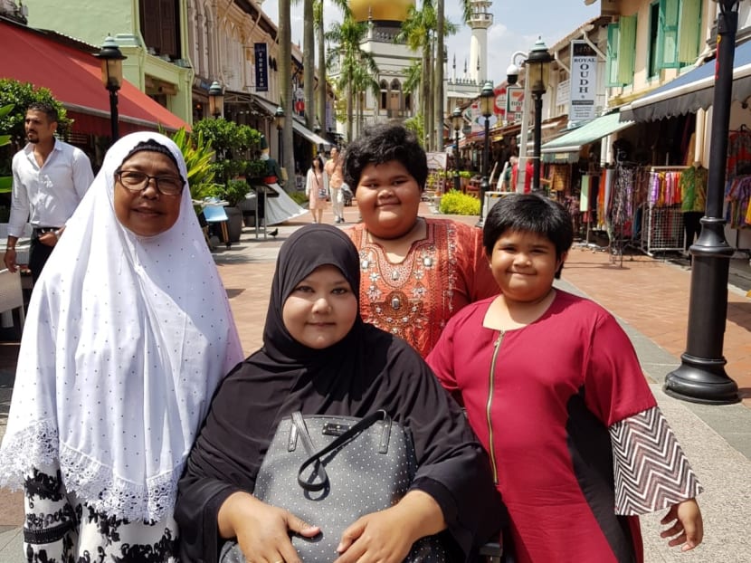 (From left) Mdm Patijah Elias, Mdm Yanti Binte Mazlan, Nurul Syafiqah and Nuryn Diyana, on a family outing to the mosque.