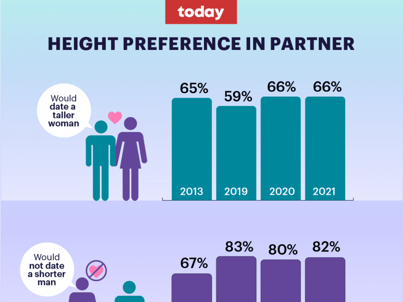 The height of their partners continued to be an important consideration for women, with 82 per cent of female respondents indicating that they would not date a shorter man. This was two percentage points more than last year’s survey results.