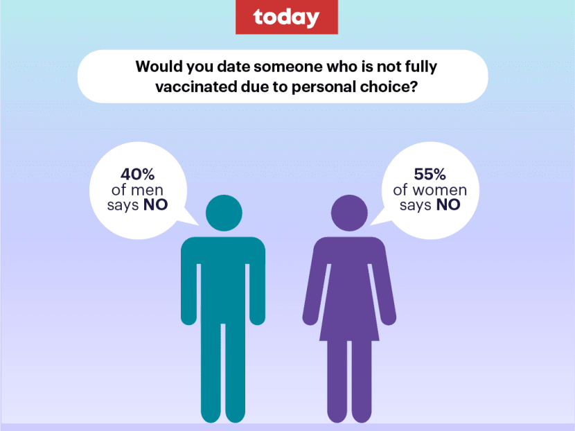 When asked if they would date someone who chose not to be fully vaccinated, more women (55 per cent) than men (40 per cent) said that they would not.