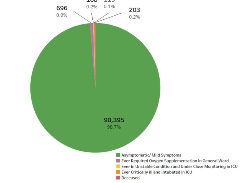 Over the last 28 days, the proportion of local cases who had mild or no symptoms was 98.7 per cent, MOH said. During the same period: