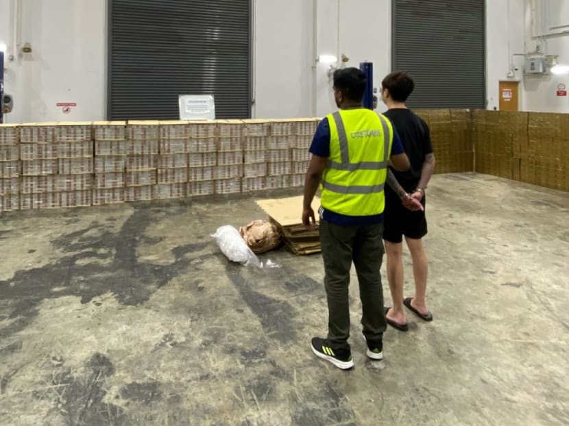 In a statement on Friday, Singapore Customs said that during the operation, its officers saw a man opening the door of a van suspected of containing duty-unpaid cigarettes.