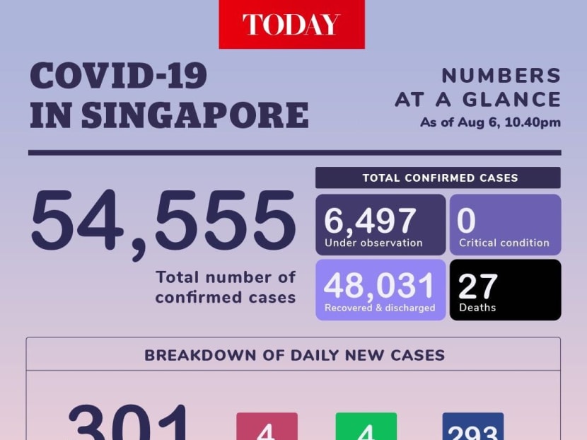 SINGAPORE — Singapore has confirmed 301 new cases of Covid-19, said the Ministry of Health (MOH) in a press release on Thursday (Aug 6).