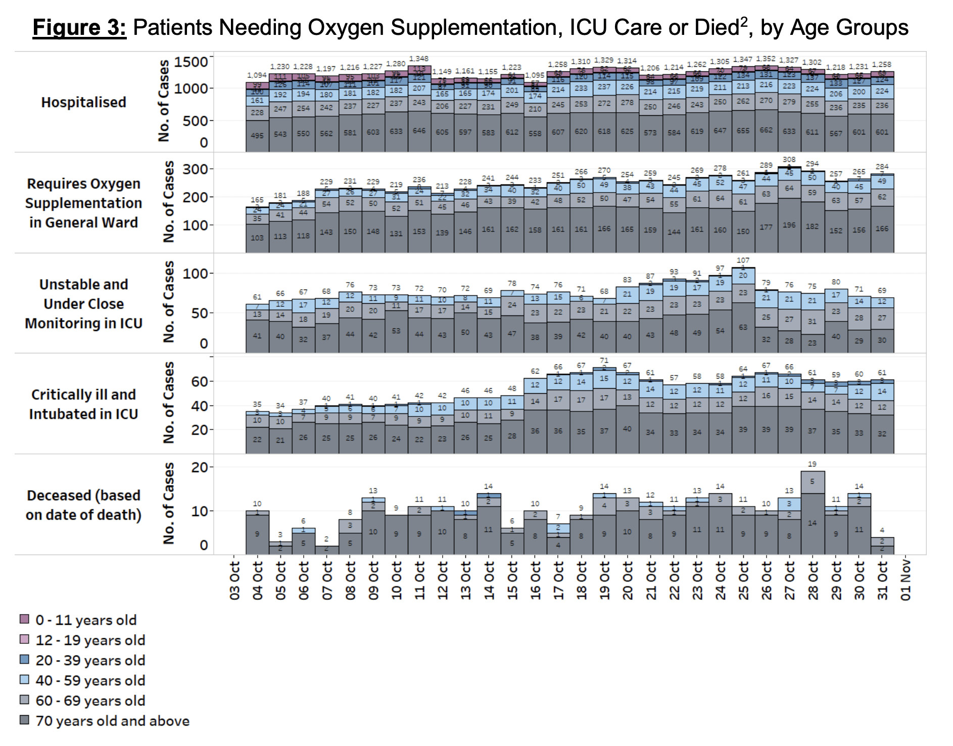 The number of patients who require oxygen support went up from 267 on Saturday to 284 on Sunday.
