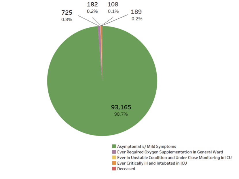 Over the last 28 days, 98.7 per cent of local infected cases were asymptomatic or had mild symptoms.