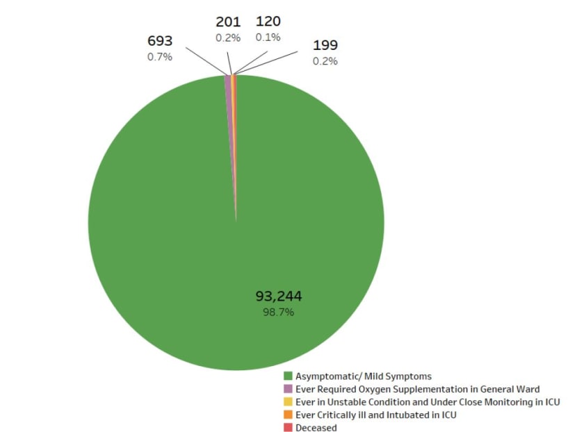 Over the last 28 days, the percentage of local cases who had mild or no symptoms was 98.7 per cent, MOH said. During the same period: