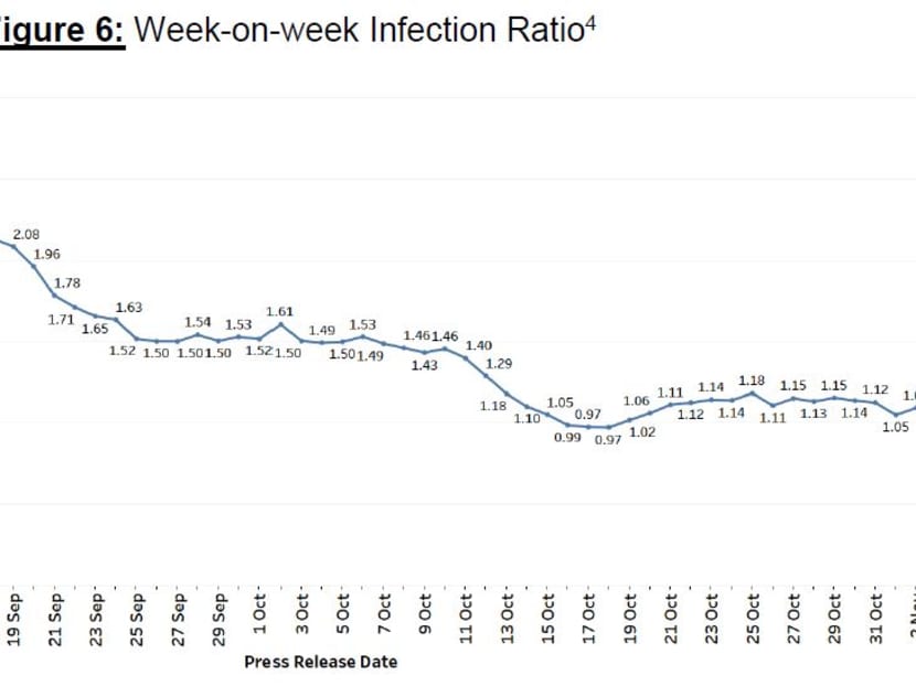 - The ratio of community cases in the past week compared with the week before stood at 0.96, down from the 1.09 reported on Nov 2