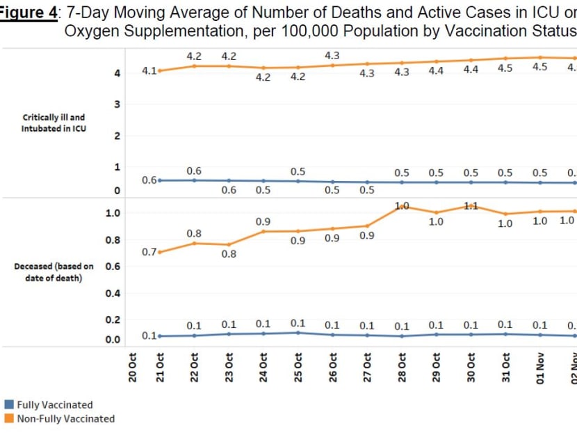 - The number of fully vaccinated patients who were critically ill in ICU was at 0.5 per 100,000 population and for non-fully vaccinated patients, it was 4.5