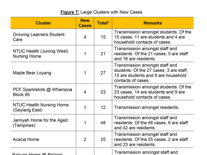 Among large clusters that are being closely monitored by the ministry, nine had new cases. This was two more clusters compared to Tuesday.