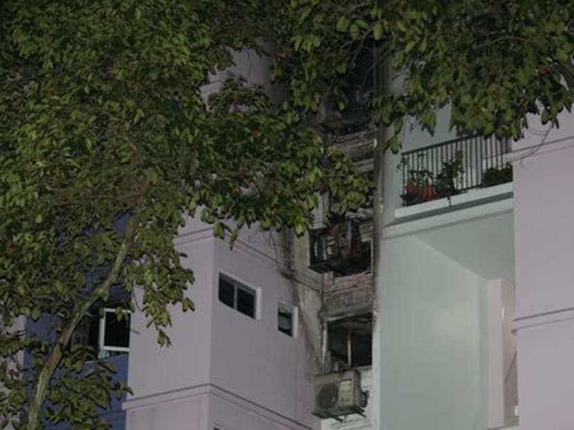 (Above: The aftermath of the fire which engulfed the bedroom of a flat at Blk 818 Woodlands Street 82. Photo: Wee Teck Hian/TODAY)