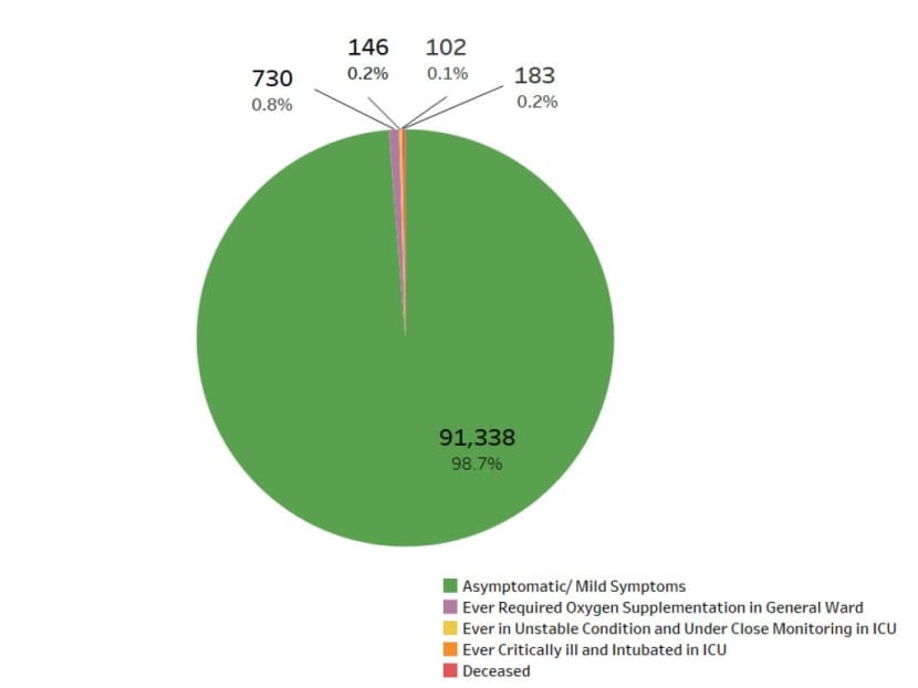 Over the last 28 days, the percentage of local cases who had mild or no symptoms was 98.7 per cent, it said. During the same period: