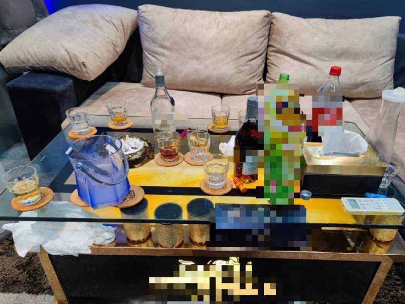 Ten men and two women — aged between 20 and 41 — were found singing karaoke and consuming liquor within the unit as customers, in violation of Covid-19 safety regulations.