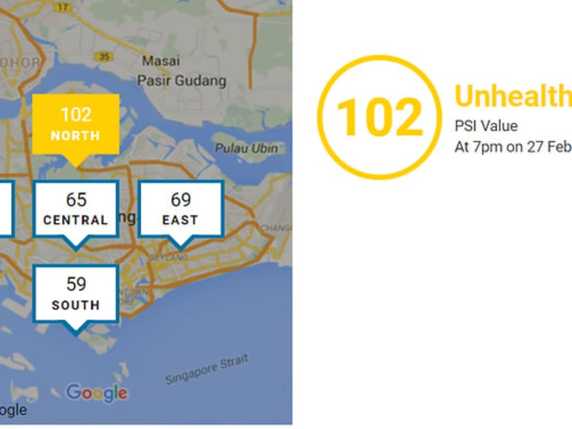 At 7pm on Saturday, the 24-hour PSI reading in the northern part of Singapore breached the 100 mark to hit 102.
