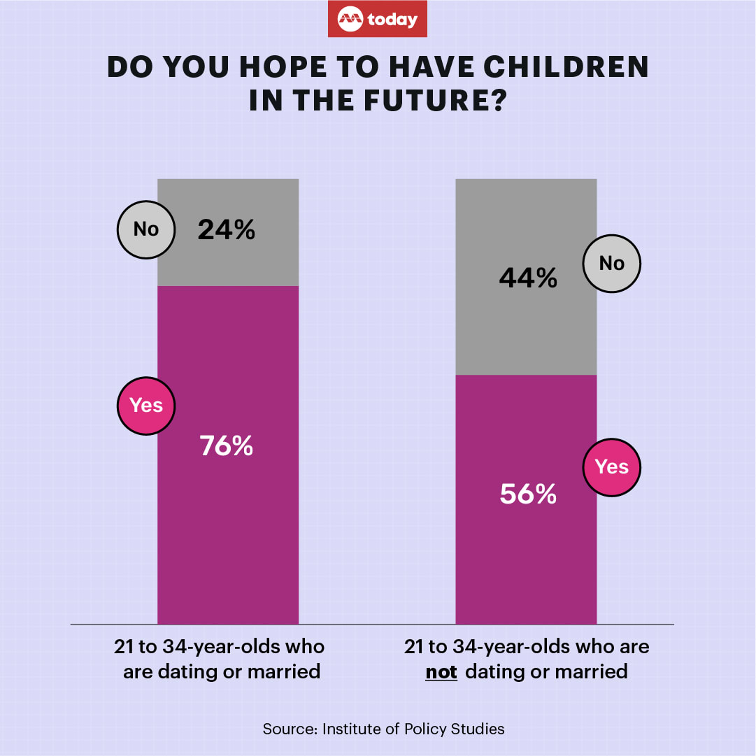 A poll by the Institute of Policy Studies (IPS) in 2023 found that 76 per cent of youths aged 21 to 34 who were married or dating hoped to have children in the future, while an earlier survey in 2021 by the Prime Minister’s Office (PMO) found that 92 per cent of married respondents wanted two or more children, but only half of them had achieved that.