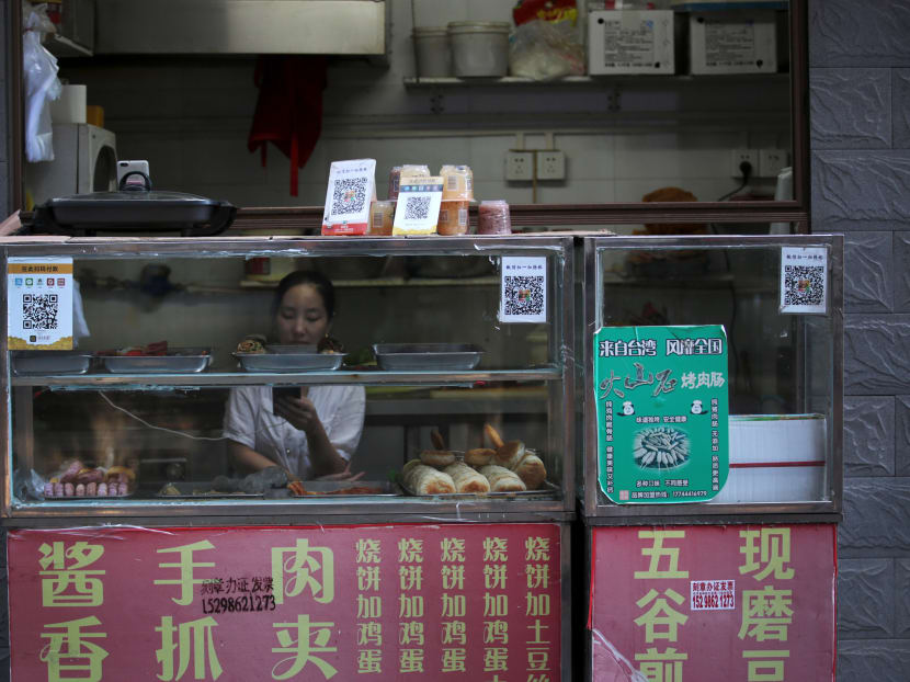 QR codes for cashless payment are displayed at a food stall in Beijing. Photo: Jason Quah/TODAY