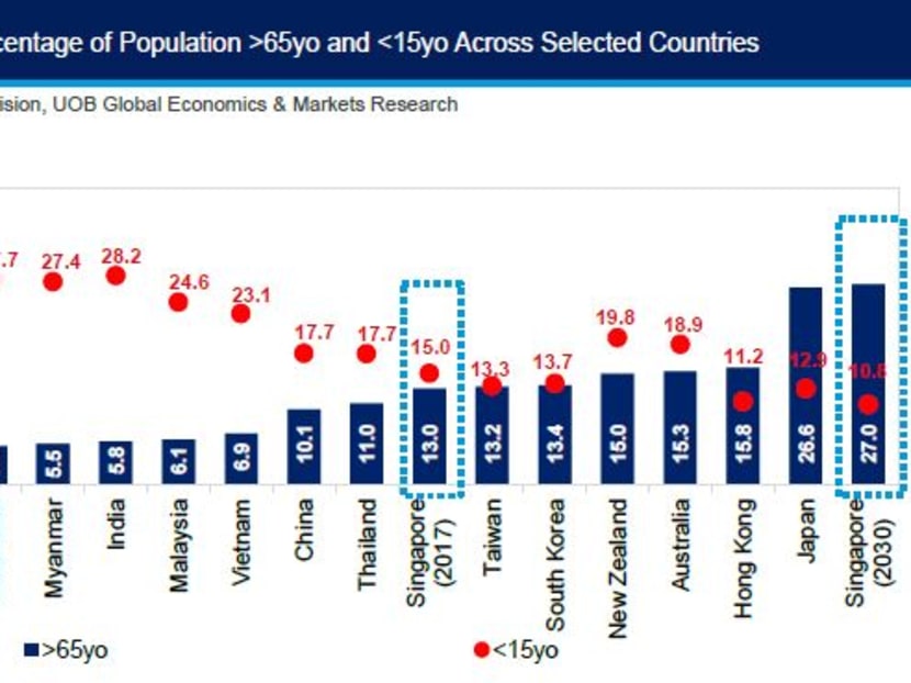 Singapore’s demographic challenge has been well-documented, and it came under the spotlight earlier this month, after a UOB report by economist Francis Tan warned that Singapore will cross a demographic Rubicon next year when the number of elderly here matches the youth population for the first time in the country’s modern history.