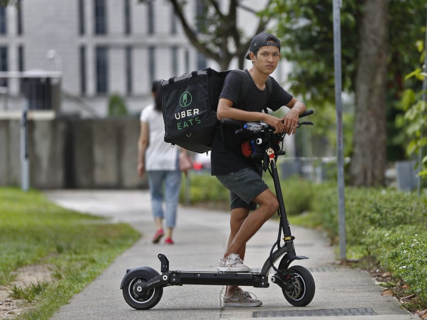 Muhammad Azrul, 18, uses a PMD to do food deliveries. He quit his job as a cleaner as he found delivering food easier while still making the same amount of money. Photo: Raj Nadarajan/TODAY