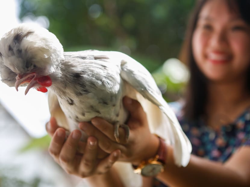 Ms Jayce Ho, who manages the account @sgpolishchicken, lives with her parents, seven chickens, a duck and a dog in their semi-detached house.