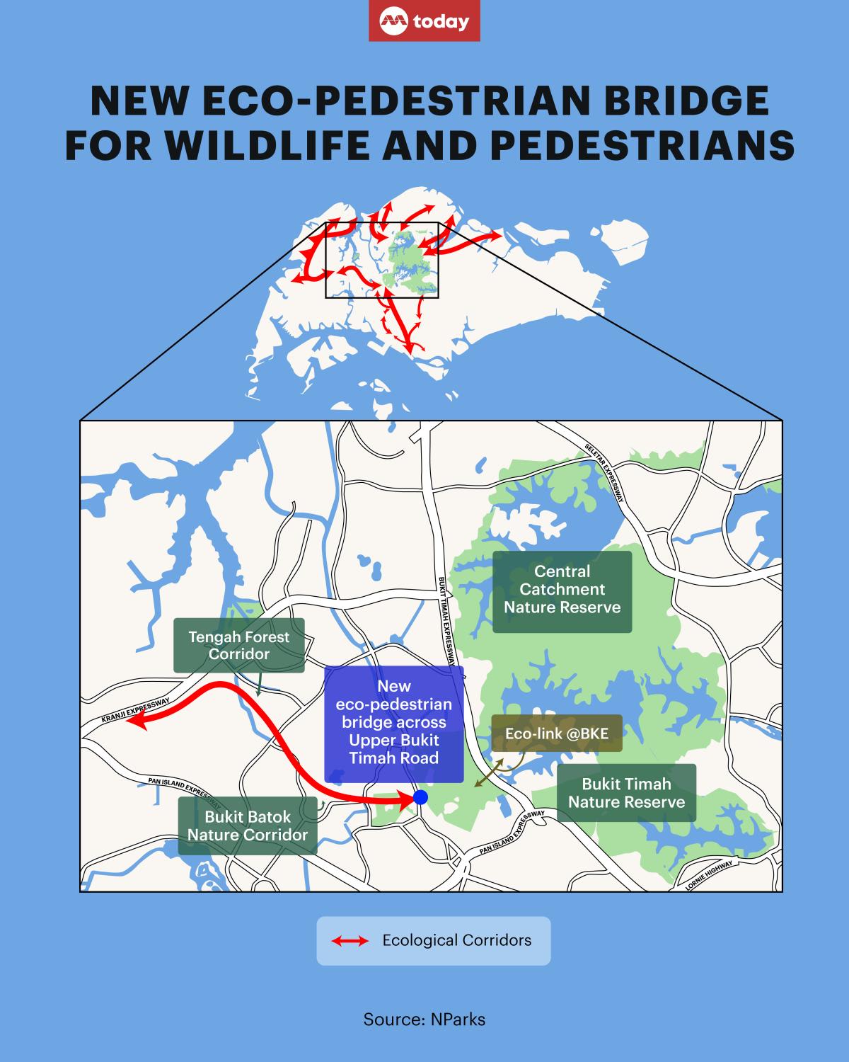 - An "eco-pedestrian bridge" for wildlife and pedestrians will be constructed across Upper Bukit Timah Road by 2026
