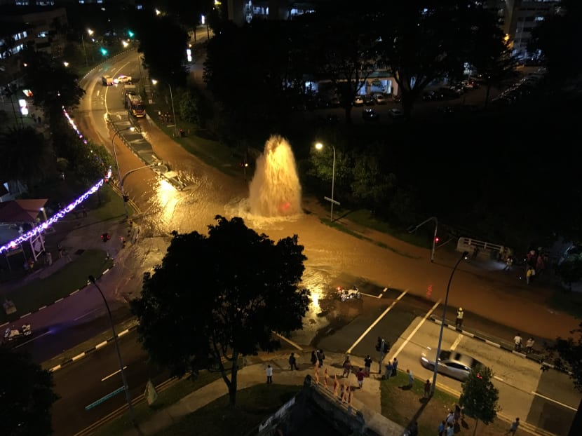 The Singapore Civil Defence Force (SCDF) said that they had received a call at 9.54pm on Tuesday of a pipe burst along Bukit Batok West Ave 6 in front of Block 153.