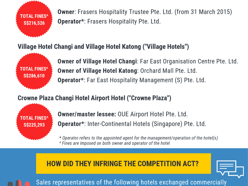 Under the Competition Act, financial penalties are capped at 10 per cent of the offender's total turnover. In this case, one of the hotels was fined the statutory maximum, CCCS said. The anti-competition watchdog declined to name the hotel.