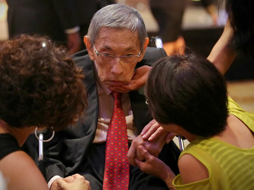 The 84-year-old, who had suffered two strokes — the first in 2008 — as well as a hip injury in 2013, was in a wheelchair and was accompanied by his wife Lina Chiam and daughter Camilla.