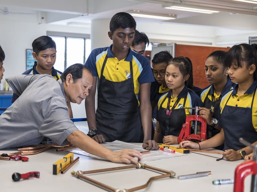At the end of Secondary Two, students choose one of four tracks aligned with the Institute of Technical Education’s Skills Certificate programmes: Facility services, hospitality services, retail services and mechanical servicing. They also take Normal (Technical) subjects like English, Maths and Mother Tongue.