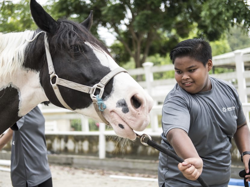 Jason’s overall confidence has also grown through “horse play”, or equine-assisted learning, which all Secondary Two students in the school undergo for 15 weeks as part of their curriculum. Students learn to lead and handle a horse while working as a team, and Jason said the interaction with horses has made him more “calm and patient”. He was once afraid to get too close to the horses for fear they might bite, but now understands them better.