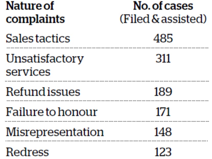 Aggressive or deceptive sales tactics led the complaints (485), followed by unsatisfactory services (311), and almost 90 per cent of all complaints were lodged by female consumers.