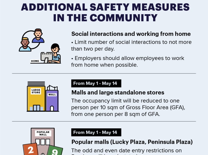 The Ministry of Health (MOH) announced on Friday (April 30) that these measures will take effect from Saturday (May 1) to May 14.