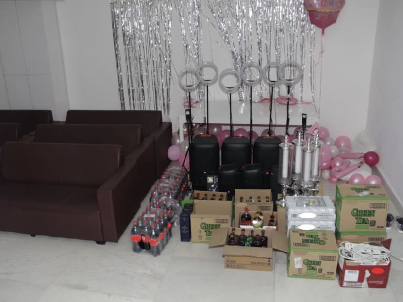Karaoke equipment, supplies of alcohol and party accessories were seized as case exhibits.