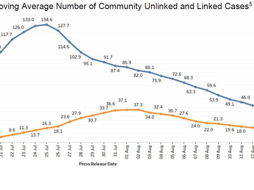 The seven-day moving average number of all linked community cases and all unlinked community cases are 42.1 and 16.7 respectively.