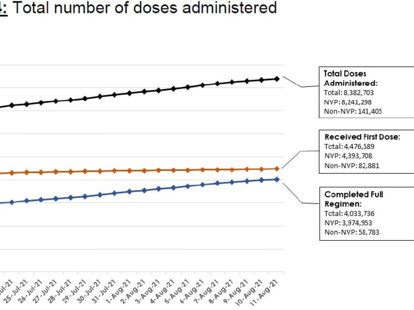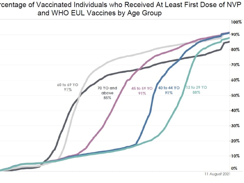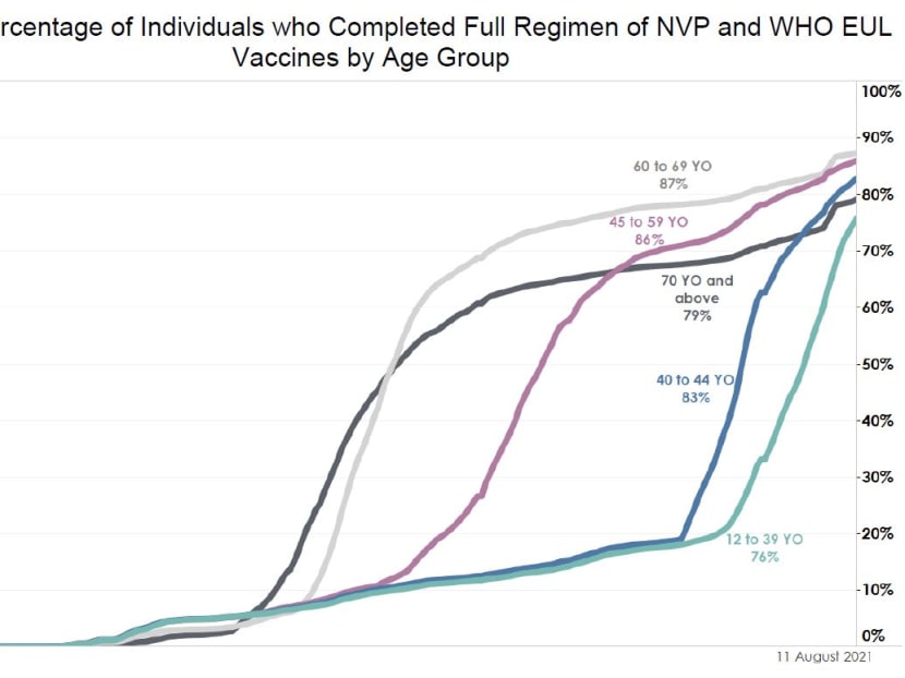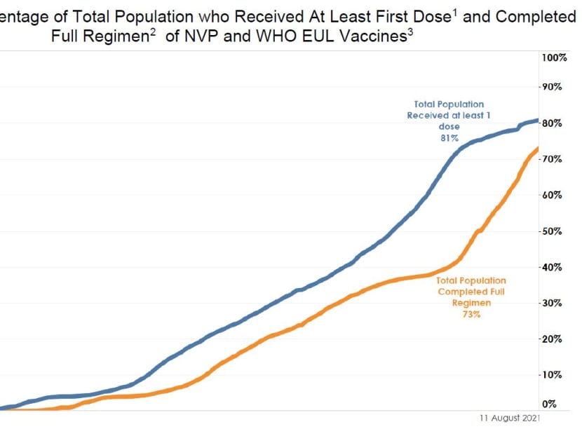 As of Aug 11, 73 per cent of the population had completed their full regimen or received two doses of Covid-19 vaccines, and 81 per cent had received at least one dose.