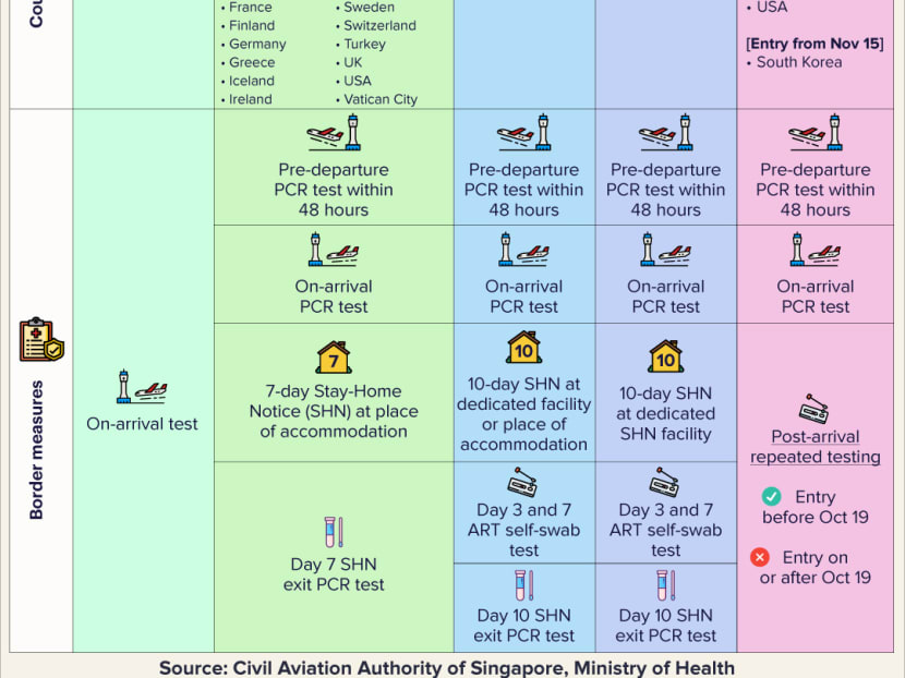 For travellers from Brunei and Germany, the adjustments to the requirements will be applicable to those who enter Singapore on or after Oct 19.