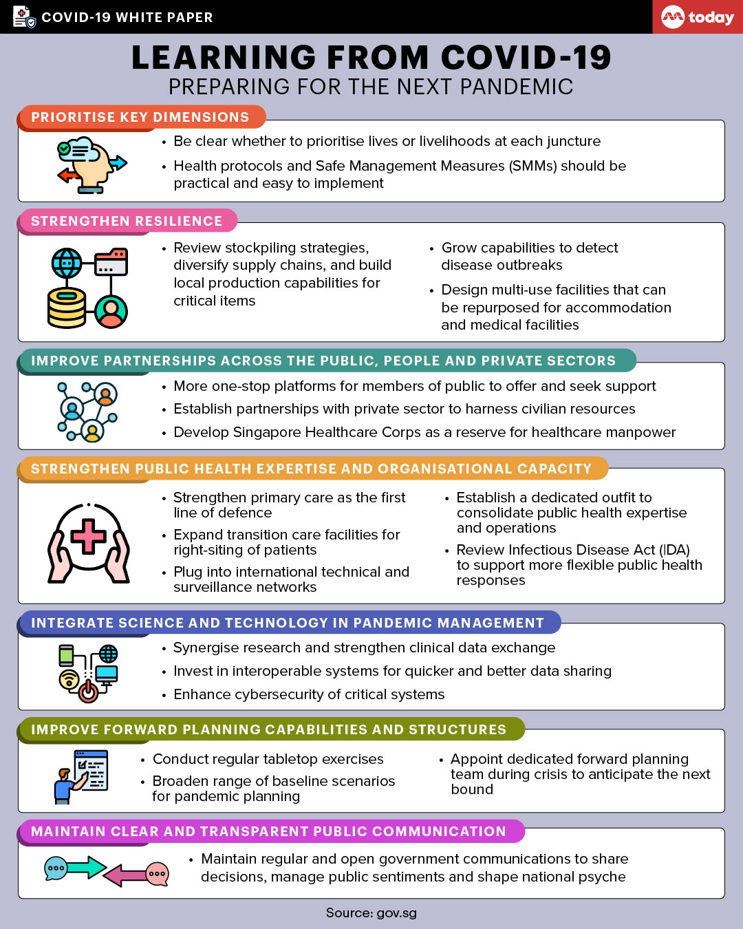 - A White Paper on Singapore's response to Covid-19 outlined seven lessons learnt in preparation for future pandemics