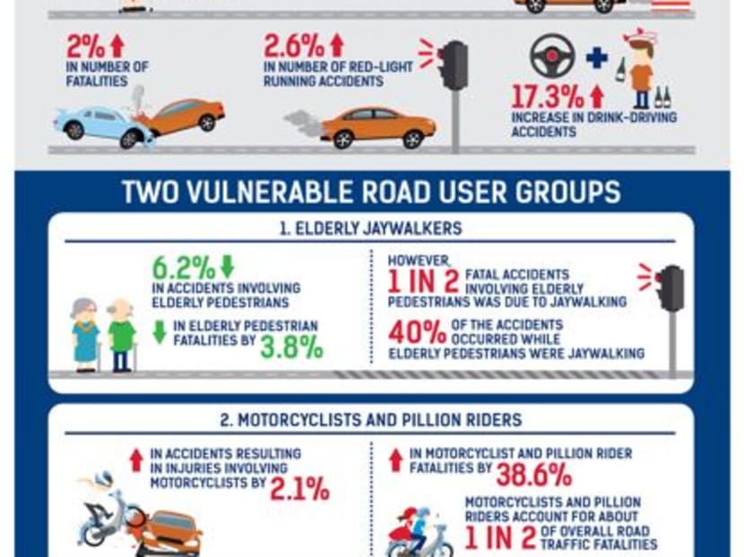 Drink-driving accidents went up by 17.3 per cent. Of these, motorcyclists who were drink driving and were involved in accidents shot up by 51.3 per cent from 39 to 59.